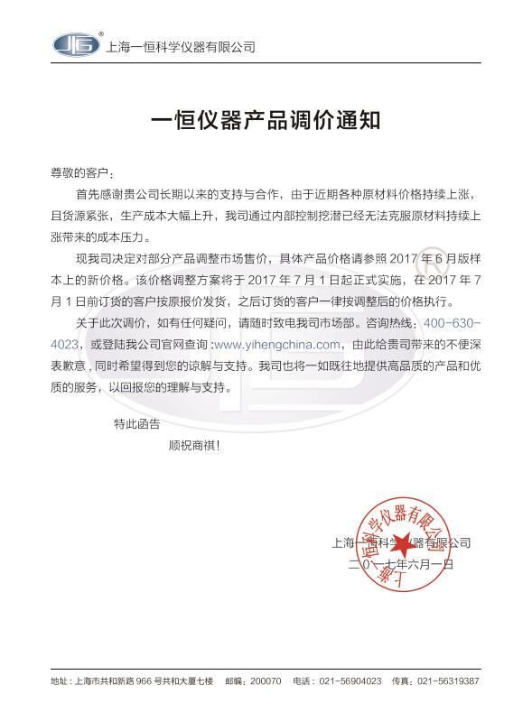 上海一恒科学仪器产品即将涨价!需要定购的朋友尽快下单哦!